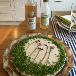 Jag vill gärna ha öl och snaps i glasen till silltårtan. Ölen får gärna vara en ljus lageröl som smakar friskt till silltårtan. Vilken snaps man väljer är naturligtvis en fråga om tycke och smak. Jag tycker att den nya O.P. Andersson Petronella är en god snaps. Den har fördelen av att vara både ekologisk och alkoholsvag, vilket absolut inte är någon nackdel. Om man är sugen på lite mera robusta smaker så är Bäska droppar ett bra val. Systembolaget rekommenderar att servera kryddad snaps vid 8-10 grader eftersom aromerna då kommer bäst till sin rätt. Det är säkert helt rätt men för mig får den gärna vara iskall när den hälls upp. Det tar ju ofta en stund innan du sätter glaset till läpparna så temperaturen hinner stiga betydligt om du inte är för snabb…